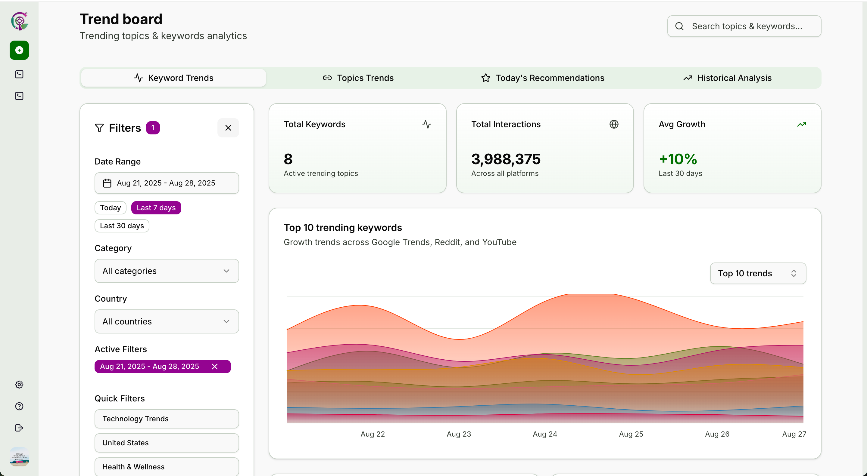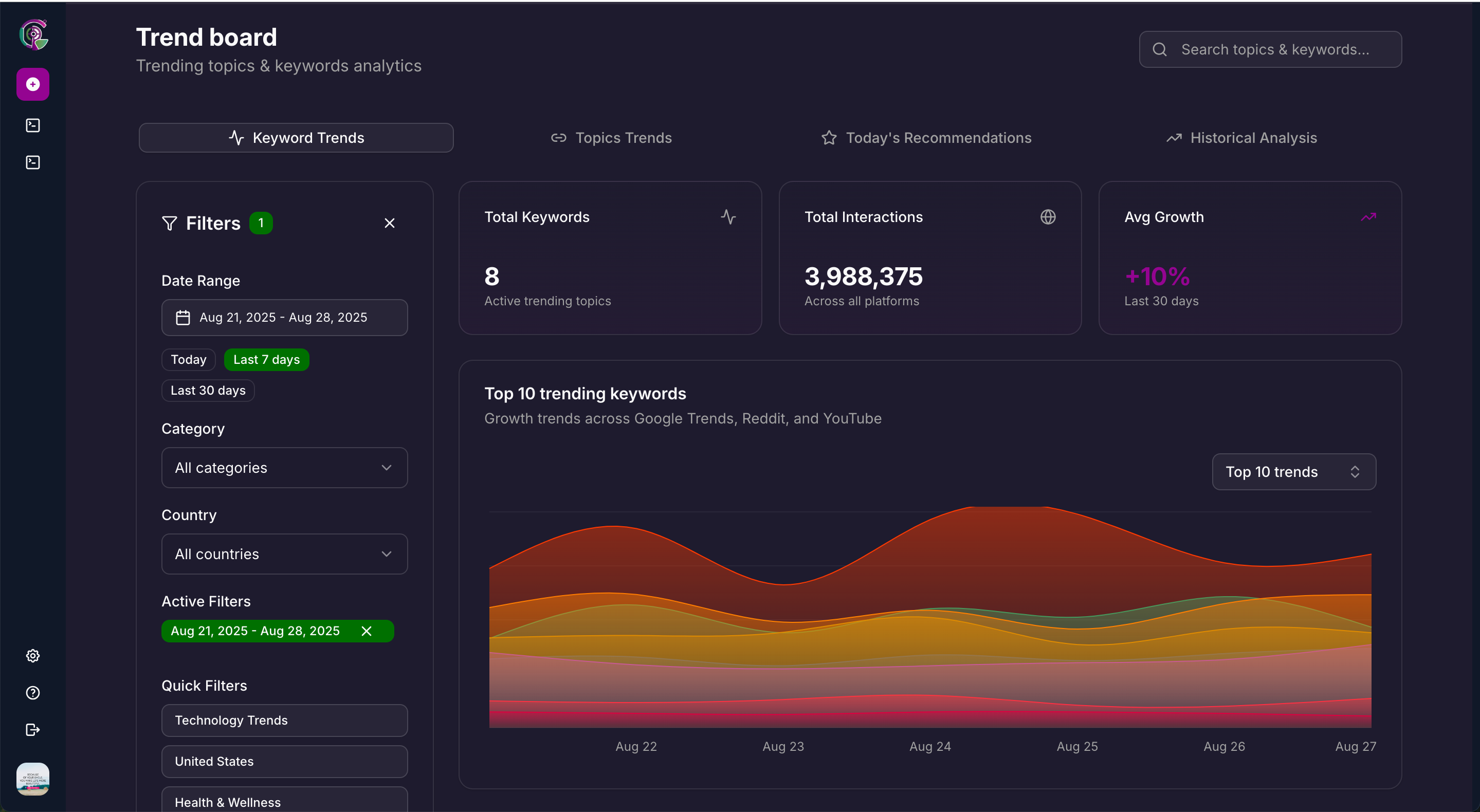 Trend Hub – lifetime access to all trending keywords, topics, and posts in one place.